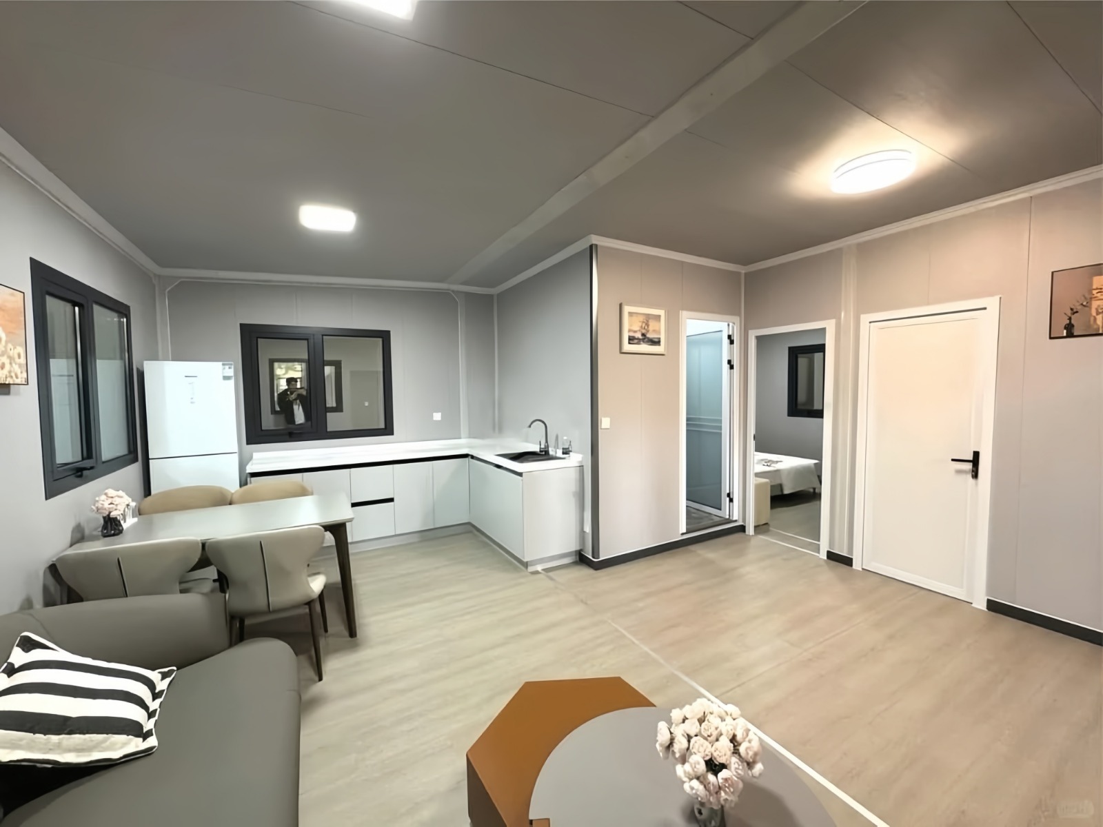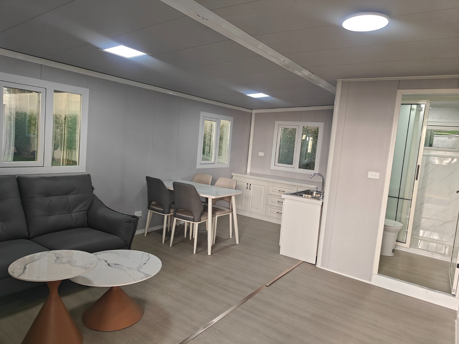 The 40FT Premium Container Home is a spacious and modern living solution designed for comfort, durability, and functionality. Built with a strong steel container structure and premium interior finishing, this container home offers a well-planned layout with bedroom, bathroom, kitchen, and open living area. The weather-resistant exterior and customizable interior make it ideal for residential, office, or rental use. This container home provides a reliable, stylish, and cost-effective solution for modern housing projects and commercial applications.